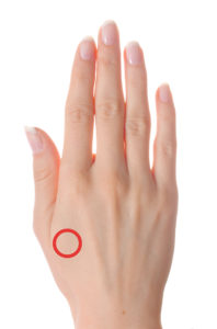 一つ目は、合谷という手の甲の親指の付け根の部分のツボです。